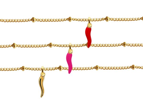 Chaîne de cheville maille boule alternée agrémenté d’une pampille corne d’abondance en acier inoxydable doré