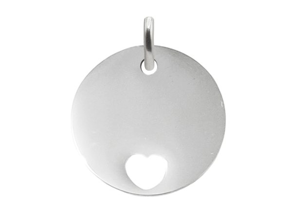 Pendentif composé d’une médaille ronde avec un cœur filigrane à personnaliser